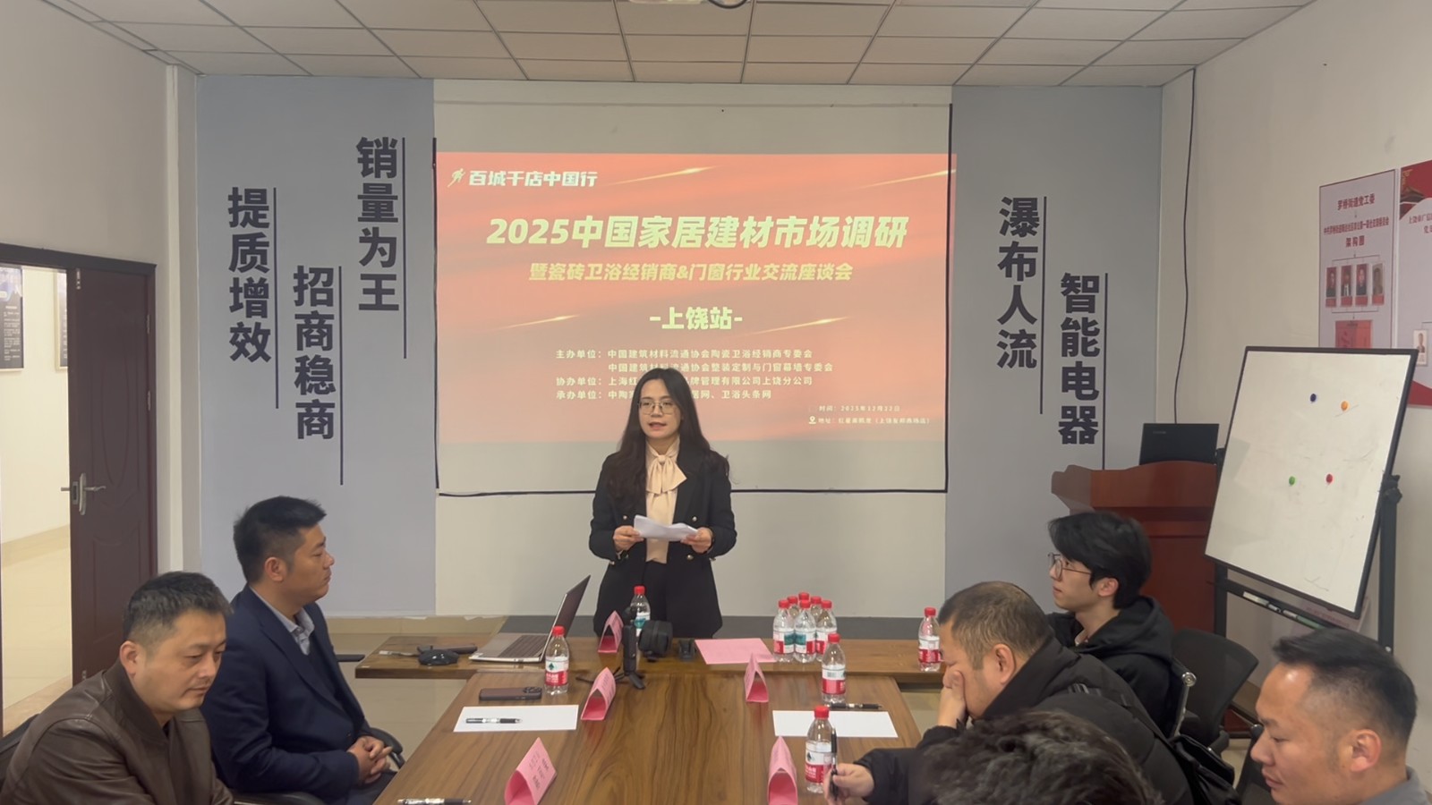 2025年12月22日,由中国建筑材料流通协会陶瓷卫浴经销商专委会、协会整装定制与门窗幕墙专委会联合主办,上海红星美凯龙品牌管理有限公司上饶分公司协办的“2025中国家居建材市场调研大商座谈会(上饶站)”圆满成功。此次会议吸引了索菲亚定制、卡诺亚定制、新标门窗、雅帝乐门业、尚品门窗、新中源陶瓷、东鹏瓷砖、金科瓷砖、箭牌卫浴、华艺卫浴等大商参与。