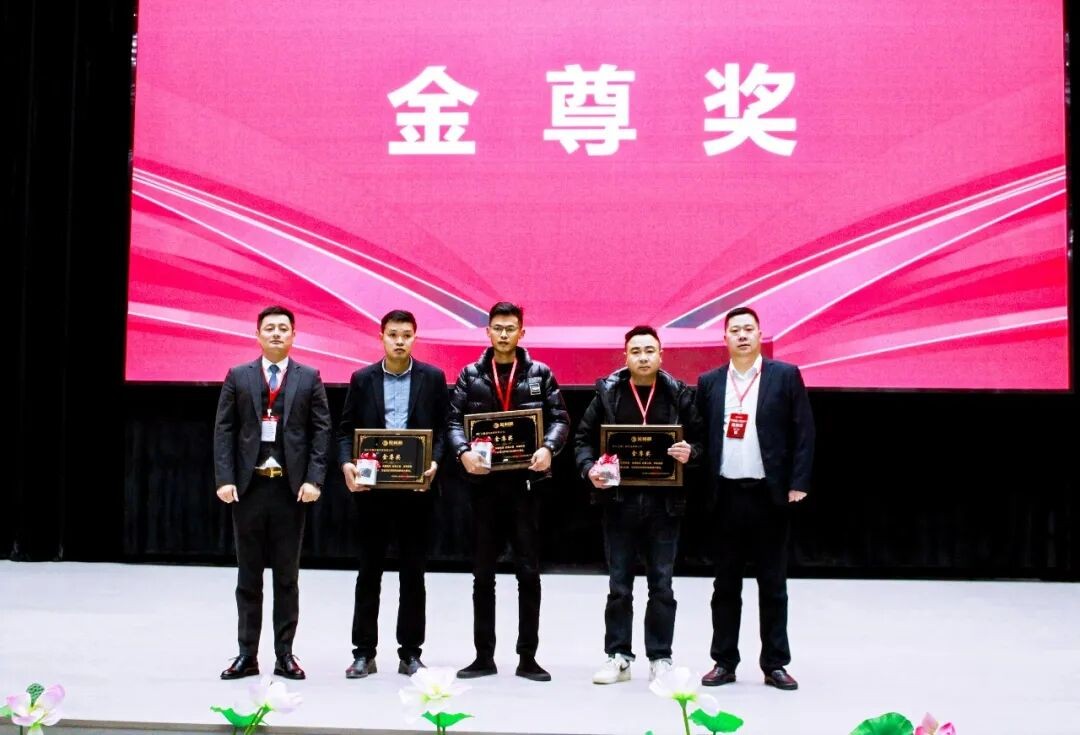 南浔直营中心运营总监主持颁奖环节,为27位优秀合作伙伴分别颁发启明星奖、荣耀之星、金尊奖三大奖项。颁奖环节的深层意义远超表彰本身:其一,是对优秀合作伙伴三年来辛勤付出与坚定信任的认可与回馈,彰显金利源“共生共赢”的合作理念;其二,通过榜样的力量激励全体合作伙伴,凝聚“比学赶超”的发展氛围,推动整个合作生态共同进步;其三,以奖项为纽带,进一步夯实品牌与合作伙伴的情感联结,强化长期合作的信心与决心,为未来携手抢占绿色建材市场先机筑牢根基。