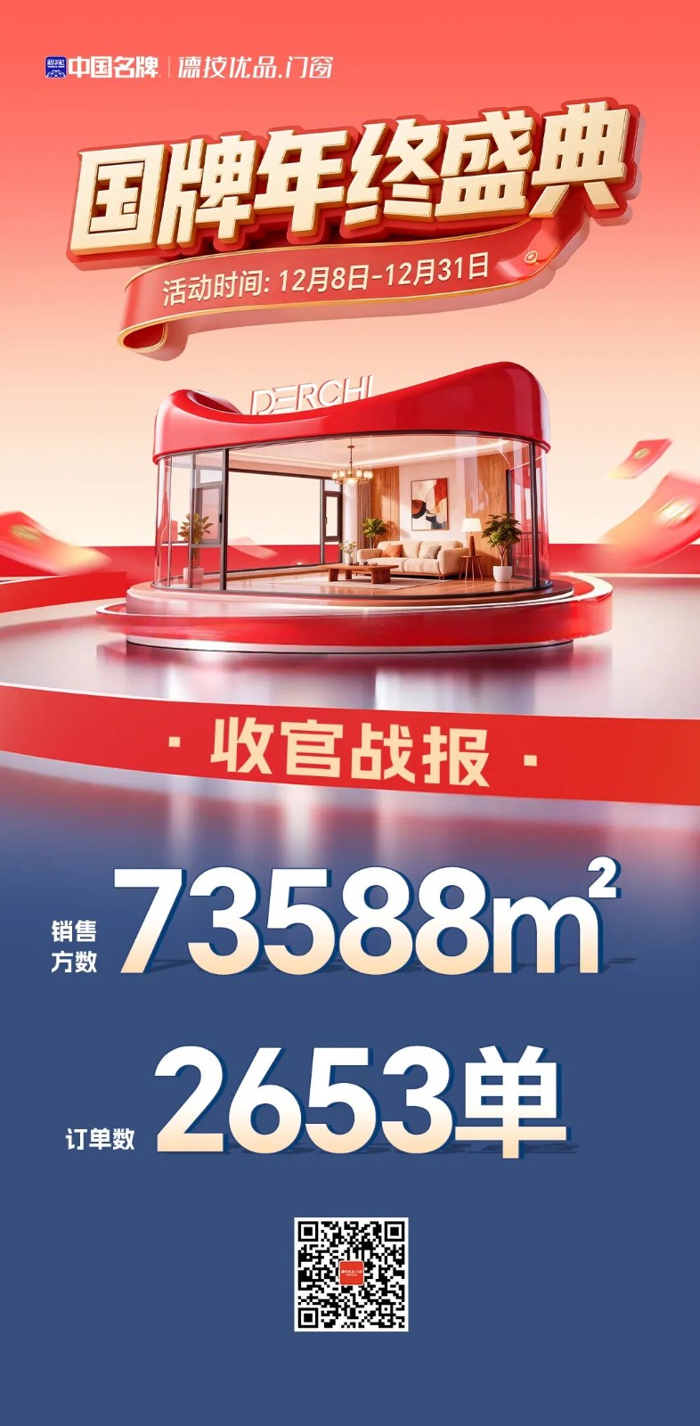时光荏苒,岁末收官!备受瞩目的德技优品2025国牌年终盛典交出亮眼战报——签单2653单,签约面积73588㎡,已于12月31日正式落下帷幕。从12月8日到12月31日,为期24天的狂欢盛宴,以满满的诚意让利与贴心服务,赢得了万千消费者的青睐与信赖,为2025年画上了圆满的句号。