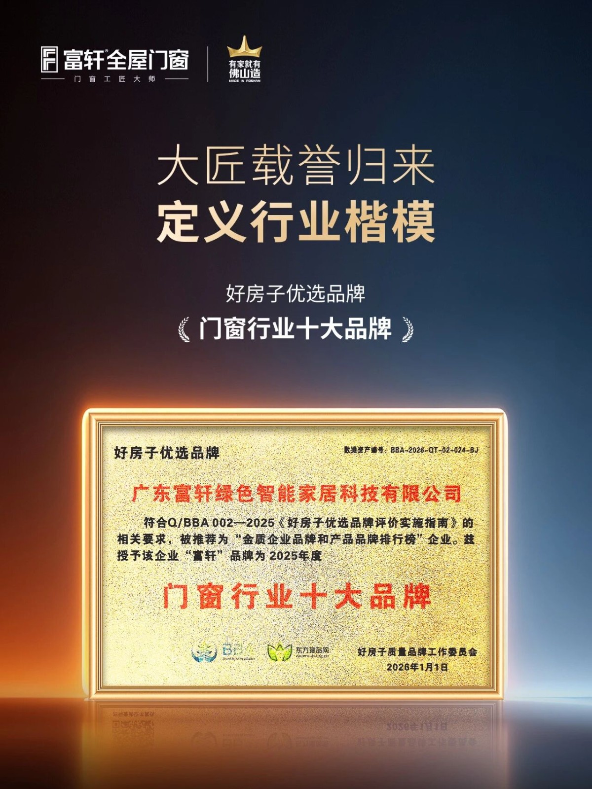 荣获“好房子优选品牌-门窗行业十大品牌”