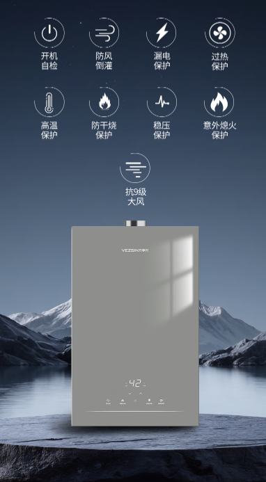 360°安全防护网,开机即守护从启动到关闭智能护航烟道自检、低压适配、老少无忧万事兴16L6T-W燃气热水器守护家的每一度温暖