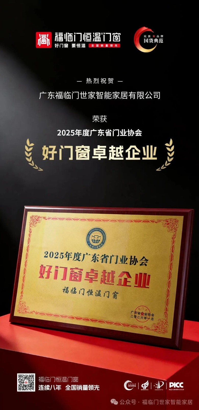 荣获“2025年度好门窗卓越企业”荣誉称号,是福临门恒温门窗发展历程中的一个重要里程碑,也是一个新的起点。未来,福临门恒温门窗将继续秉承“匠心造福”的理念,不断提升产品品质和服务水平,为消费者提供更加优质的产品和服务。