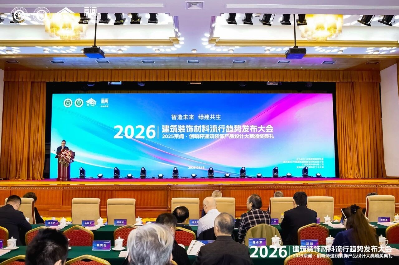2026年1月16日,备受行业瞩目的“2026建筑装饰材料流行趋势发布大会暨2025京闻·创响杯建筑装饰产品设计大赛颁奖典礼”落下帷幕。作为行业权威赛事,此次大赛汇聚了众多建筑装饰材料领域的顶尖品牌、设计大咖与行业专家评审团,共同探讨未来人居空间的材料趋势与设计风向。