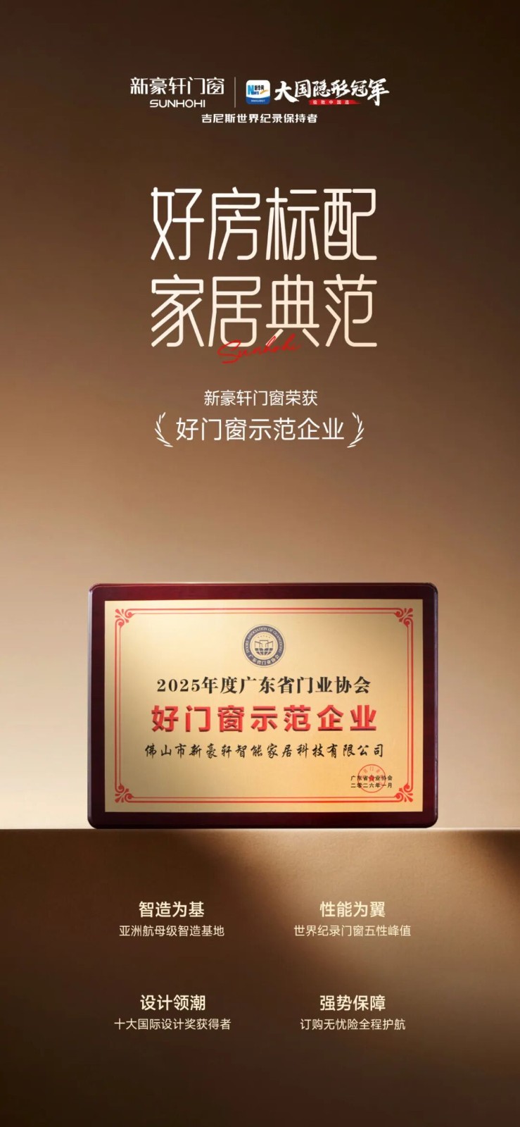 “好房子”“好门窗”的双奖认证,标志着新豪轩门窗已超越单一产品供应商的角色,成为以系统化解决方案推动行业进步的标杆力量。新豪轩用绿色智能的产品与卓越的智造实力,将国家政策描绘的“好房子”蓝图,转化为千家万户可感、可知、可享的美好现实,持续引领中国家居向高品质、可持续的未来迈进。