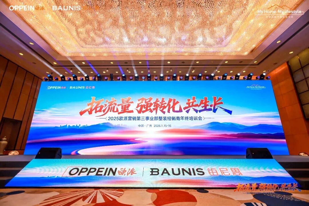 为凝聚共识,共探破局之道,1月15日-16日,欧派营销第三事业部在广州召开以“拓流量强转化共生长”为主题的整装经销商年终培训会。欧派营销第三事业部总经理张晓锋、副总经理刘兵及核心团队与广大装企伙伴齐聚一堂,聚焦家装企业转型跃新与穿越周期能力构建,深度拆解存量市场破局路径,共探整装行业高质量发展新方向。