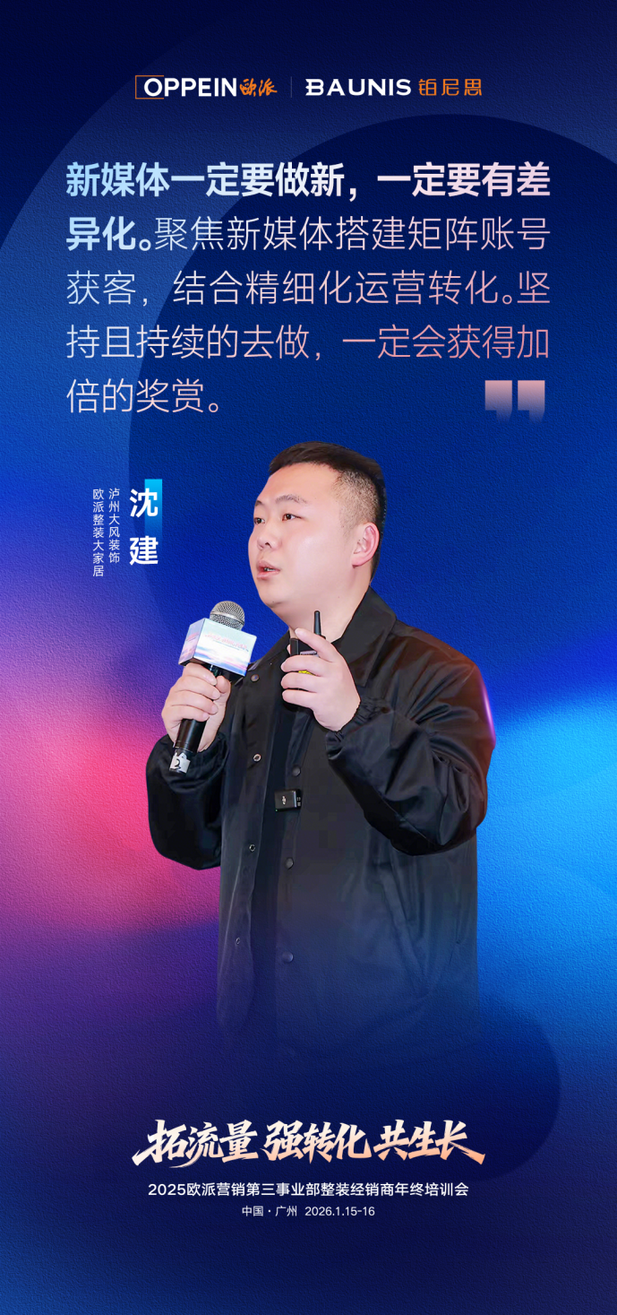 站在行业变革的关键节点,欧派营销第三事业部将与装企伙伴继续携手并肩,共同推进生活方式的深度落地,坚定穿越市场周期,共同奔赴整装行业高质量发展的广阔坦途。