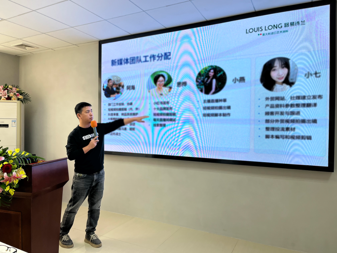 技术部负责人孙继成对工艺部的年度工作进行了总结。他指出,2025年工艺部在展厅上墙工艺统计和施工效果评估方面做了大量工作,通过对客户满意度的收集和分析,不断改进工艺流程和施工方法。围绕2026“焕新”主题,重点进行工艺比例创新和施工人员技术提升。通过研发新的工艺配方和施工工艺,提高产品的性能和质量。