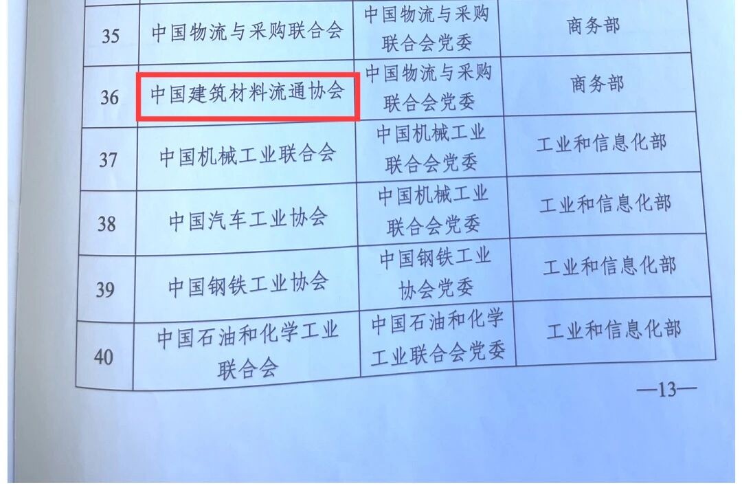 在党中央、国务院部署开展的“行业协会商会结构布局调整优化改革试点”工作中,中国建筑材料流通协会凭借突出的行业影响力、扎实的服务能力和规范的运作水平,荣幸地进入45家重点培育全国性行业协会商会之列,成为改革试点工作中的“先锋力量”。这标志着协会在国家社会治理与行业治理体系现代化进程中被赋予了新的战略定位与历史使命。